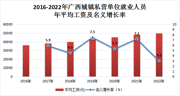 2022年广西城镇私营单位就业人员年平均工资49951元