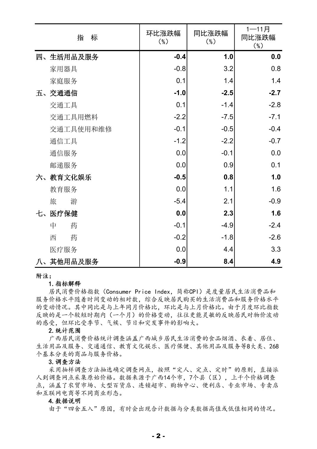 2025年11月份广西居民消费价格主要数据