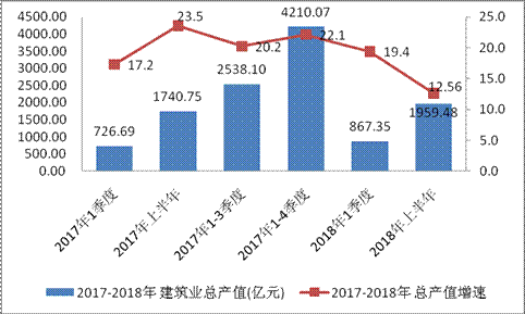 上半年,广西资质以内建筑企业(指总承包和专业承包建筑业企业,下同)完成建筑业总产值1959.48亿元,同比增长12.6%,与1季度相比,增速回落了6.8个百分点,比去年同期回落了10.9个百分点。