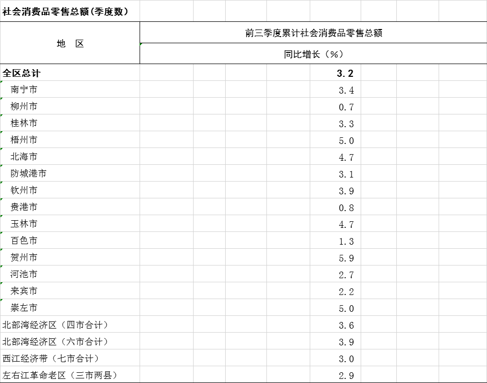 2025年前三季度广西分市分区域社会消费品零售总额(季度数)