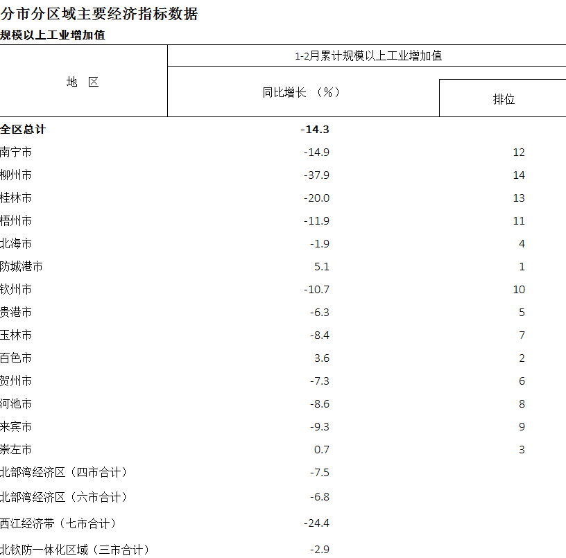 2020年1-2月广西分市分区域规模以上工业增加值
