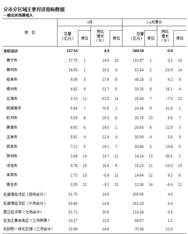 2020年1-4月广西分市分区域人民币存、贷款余额