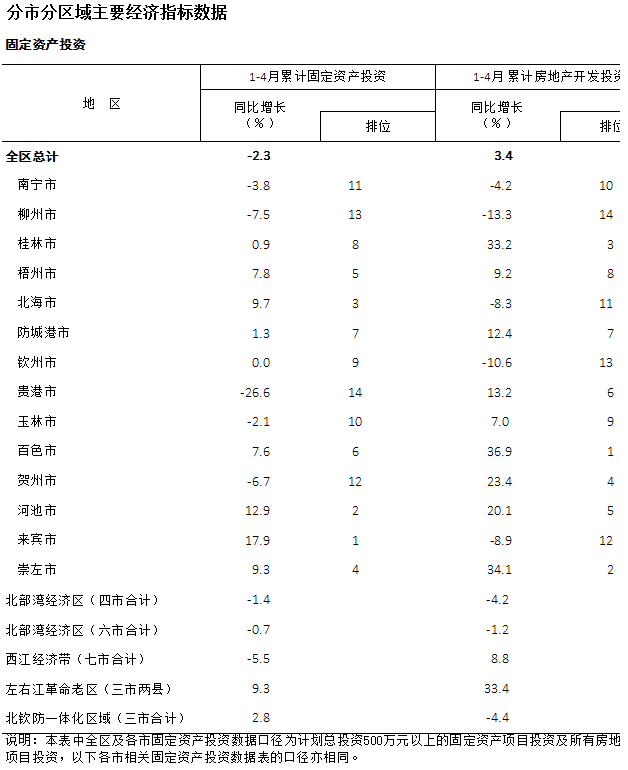 2020年1-4月广西分市分区域商品房销售面积及销售额