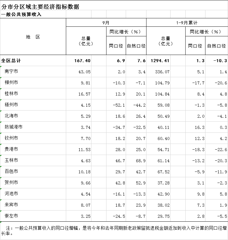 2022年1-9月广西分市分区域一般公共预算收入