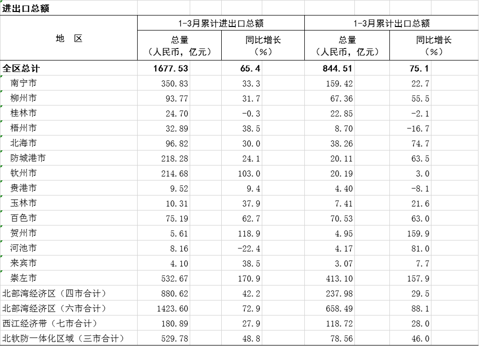 2023年1-3月广西分市分区域进出口总额