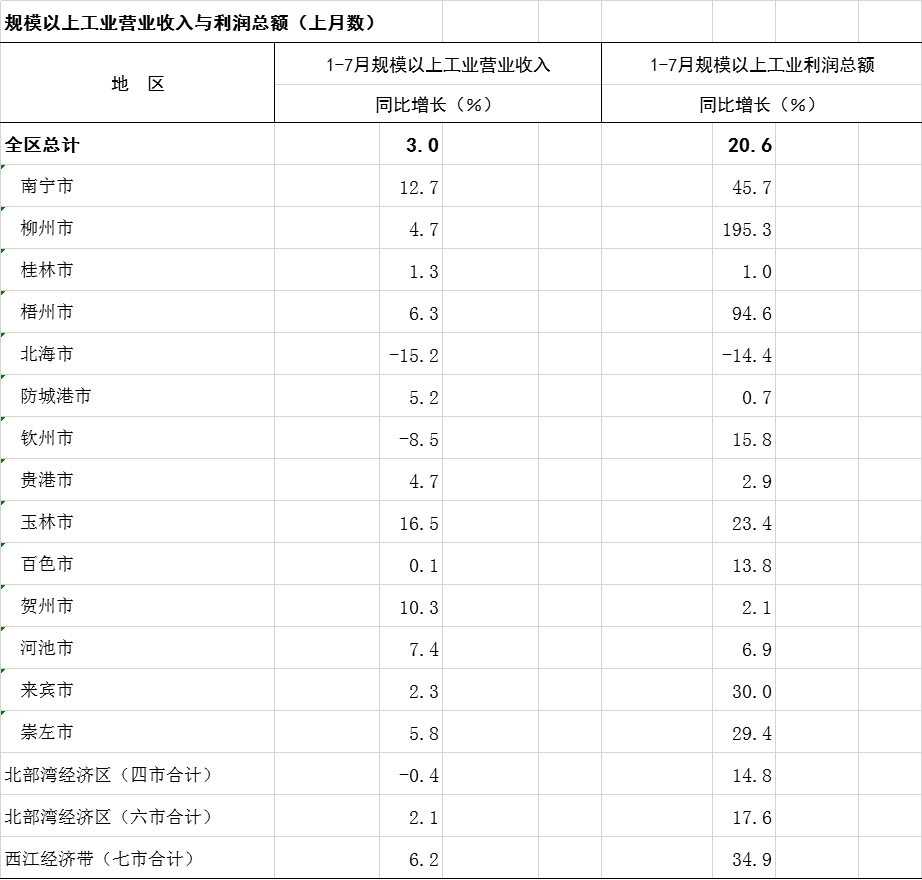 2025年1-8月广西分市分区域规模以上工业营业收入与利润总额(上月数)