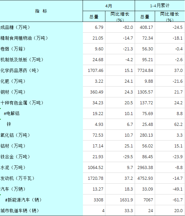2020年1-4月广西主要工业产品产量