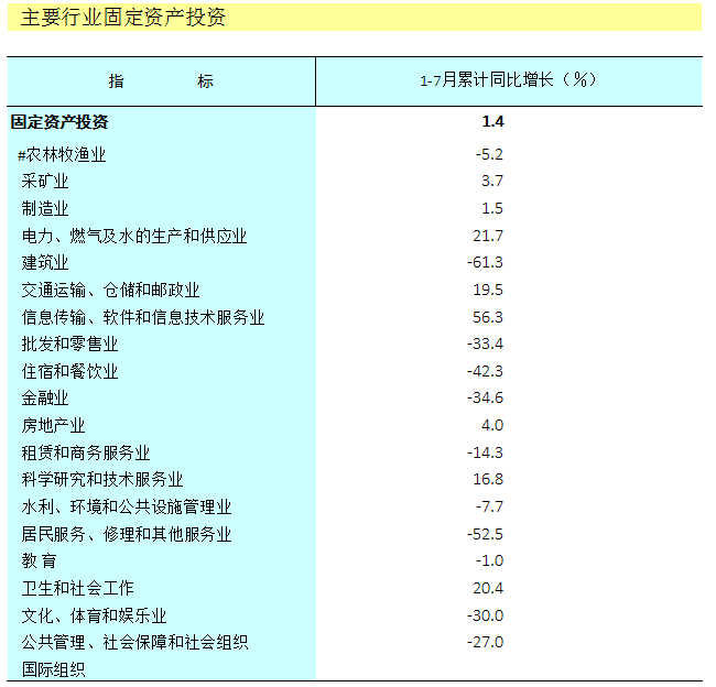2020年1-7月广西主要行业固定资产投资