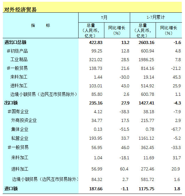 2020年1-7月广西对外经济贸易