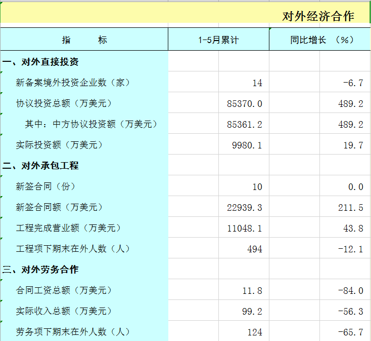 2024年1-5月广西对外经济合作