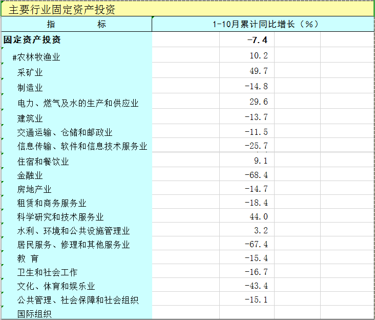 2024年1-10月广西主要行业固定资产投资增速