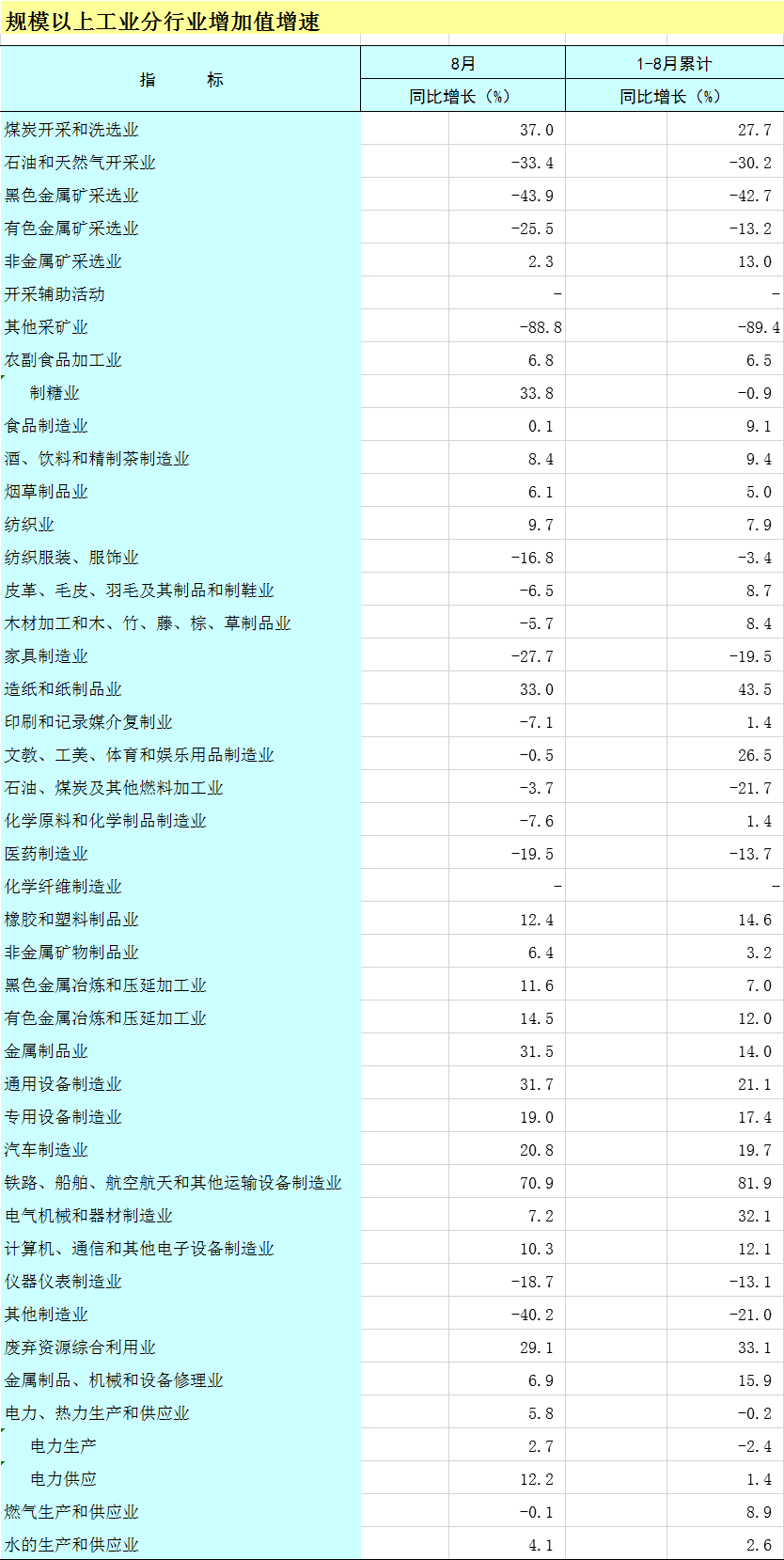 2025年1-8月广西规模以上工业分行业增加值增速