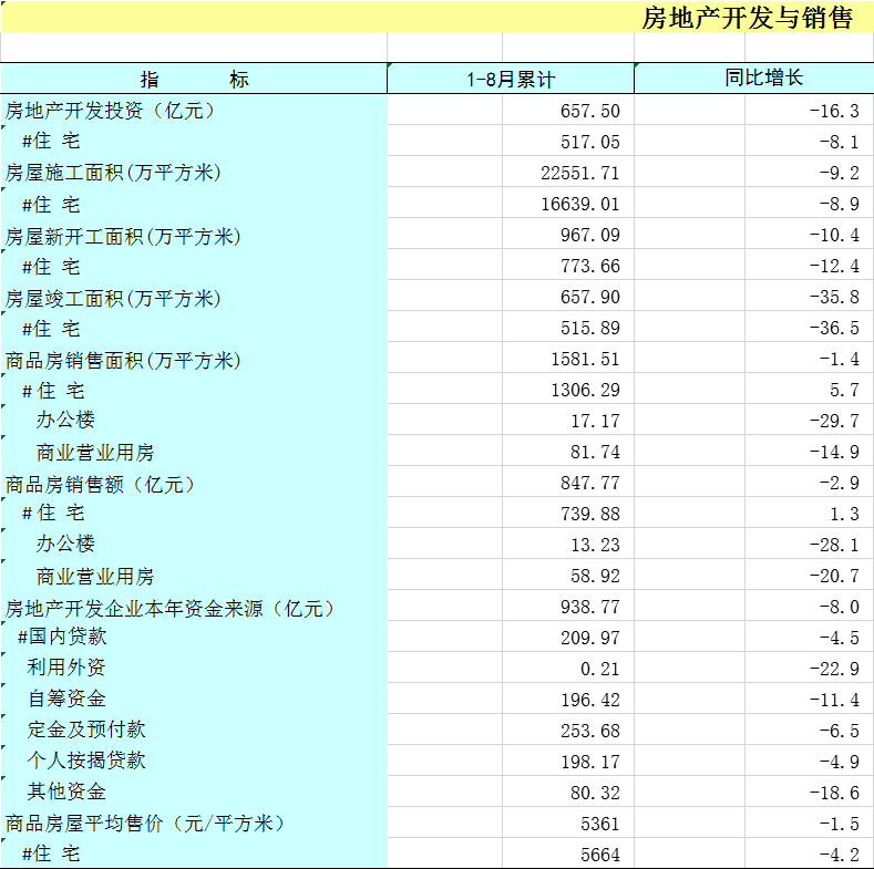 2025年1-8月广西房地产开发与销售