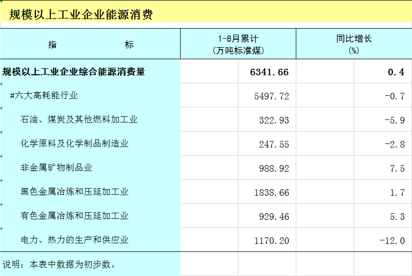 2025年1-8月广西规模以上工业企业能源消费