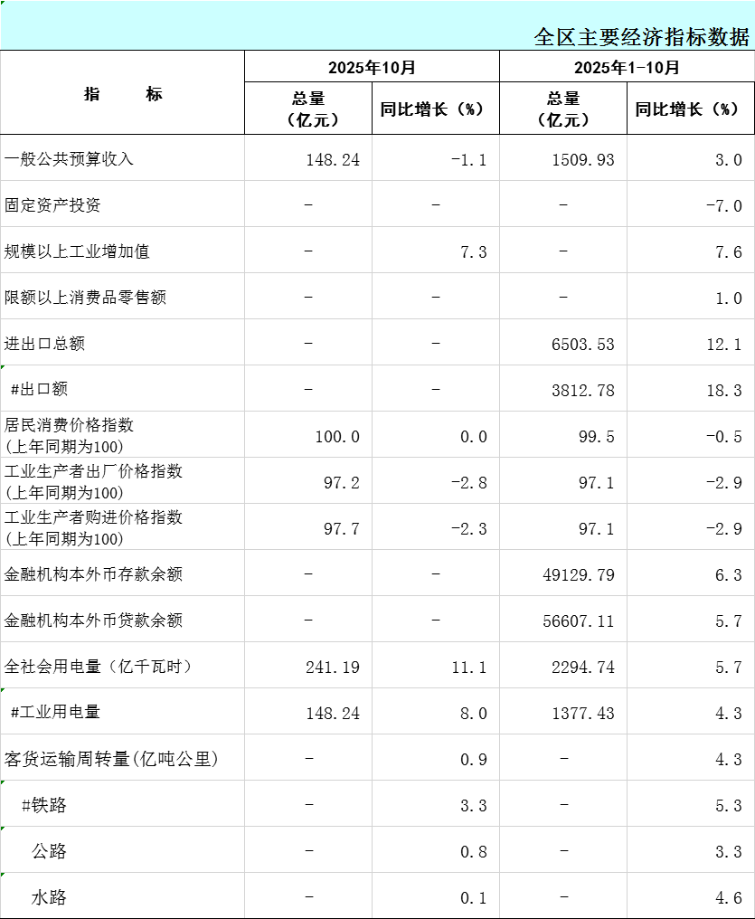 2025年1-10月广西主要经济指标数据