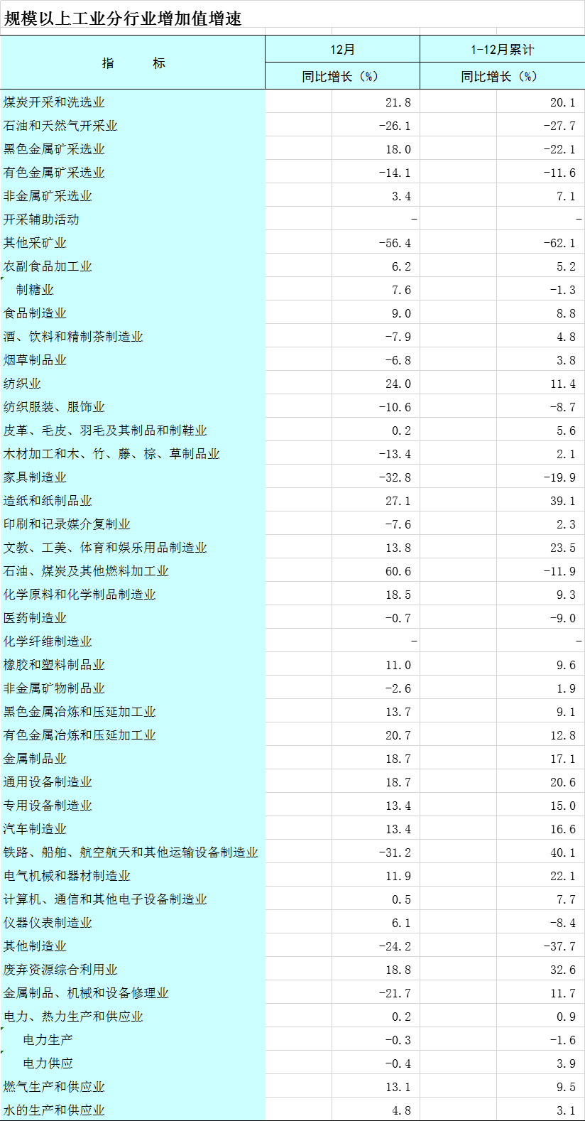 2025年1-12月广西规模以上工业分行业增加值增速