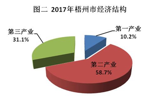 2017年,梧州市在中央和自治区党委、政府的坚强领导下,全市各级各部门认真贯彻落实中央、自治区各项决策部署,坚持稳中求进工作总基调,贯彻新发展理念,以供给侧结构性改革为主线,推动结构优化、动力转换和质量提升,国民经济稳中向好,实现了平稳健康发展(如图一)。