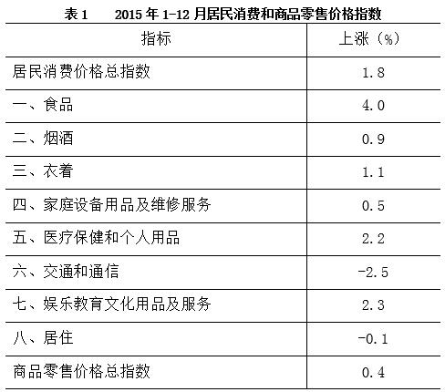 全年居民消费价格比上年上涨1.8%,其中食品价格上涨4.0%。