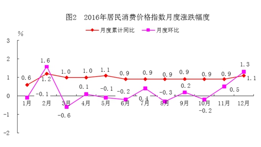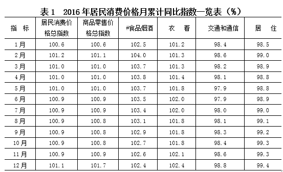 全年物价总水平同比上涨1.1%,涨幅与上年同期持平。八大类消费价格中:食品烟酒类价格上涨2.4%,衣着类上涨2.4%,生活用品及服务类上涨2.1%,医疗保健类上涨3.7%,其他用品和服务类上涨2.6%;居住类下降0.6%,交通和通信类下降1.2%,教育文化和娱乐类下降0.8%。