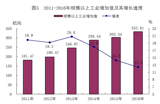 全年工业总产值1522.47亿元,增长14.2%;实现工业增加值340.88亿元,增长12.2%。其中,规模以上工业产值1501.24亿元,增长14.3%;规模以上工业增加值332.81亿元,增长12.4%。
