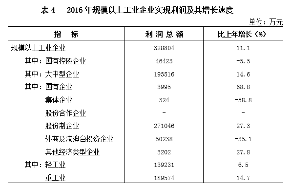 从企业效益看,全年规模以上工业企业实现主营业务收入1135.48亿元,增长9.1%,同比回落7.1个百分点;实现利润总额32.88亿元,增长11.1%,同比提高7.1个百分点;亏损企业亏损额3.51亿元,增长308.7%,同比增亏2.65亿元。