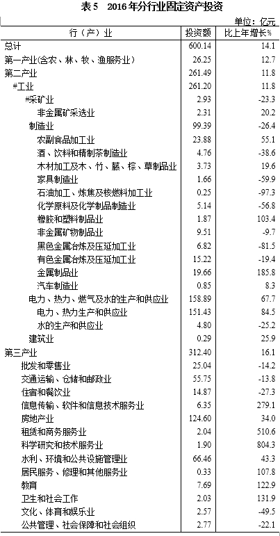 2016年防城港市国民经济和社会发展统计公报