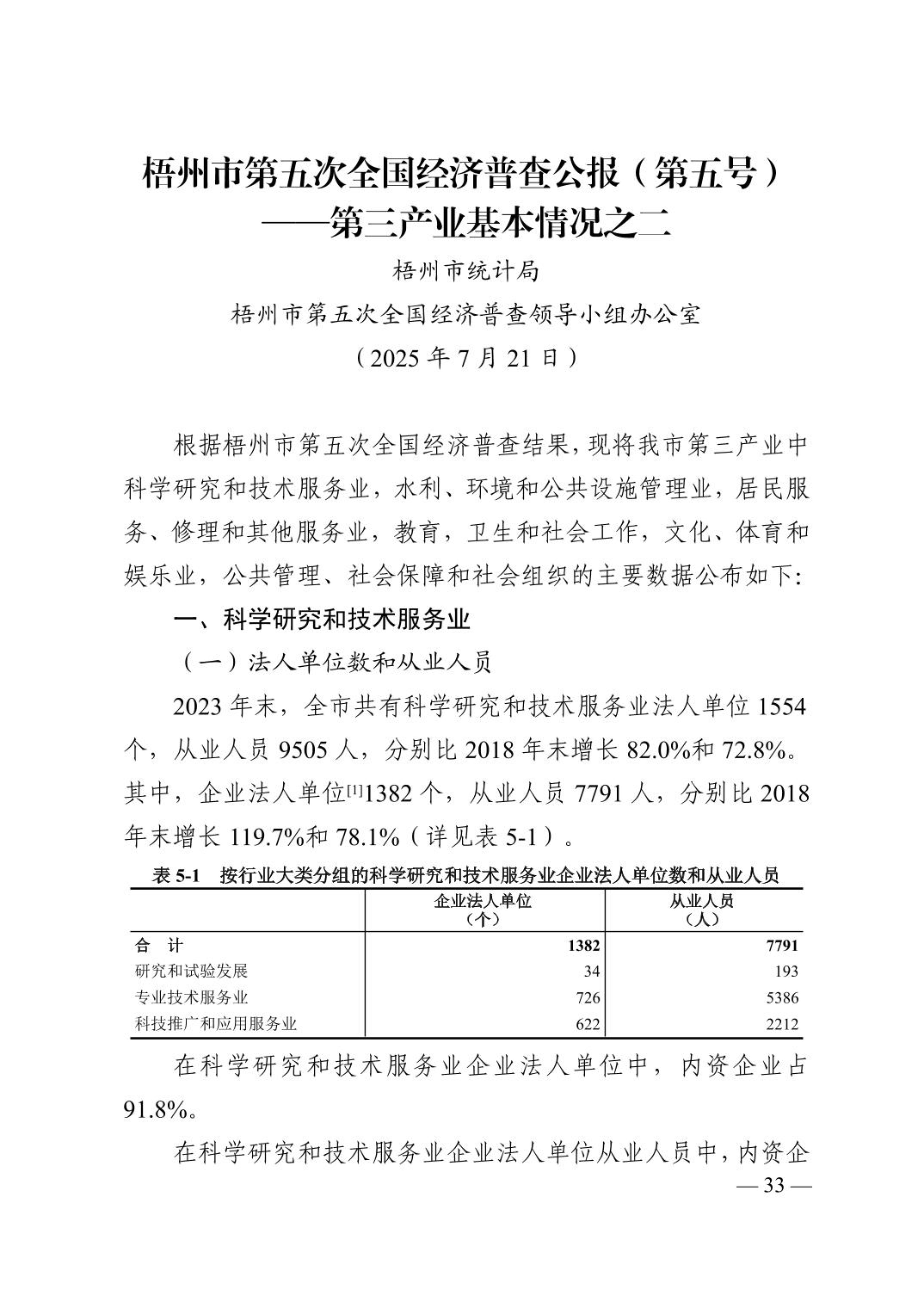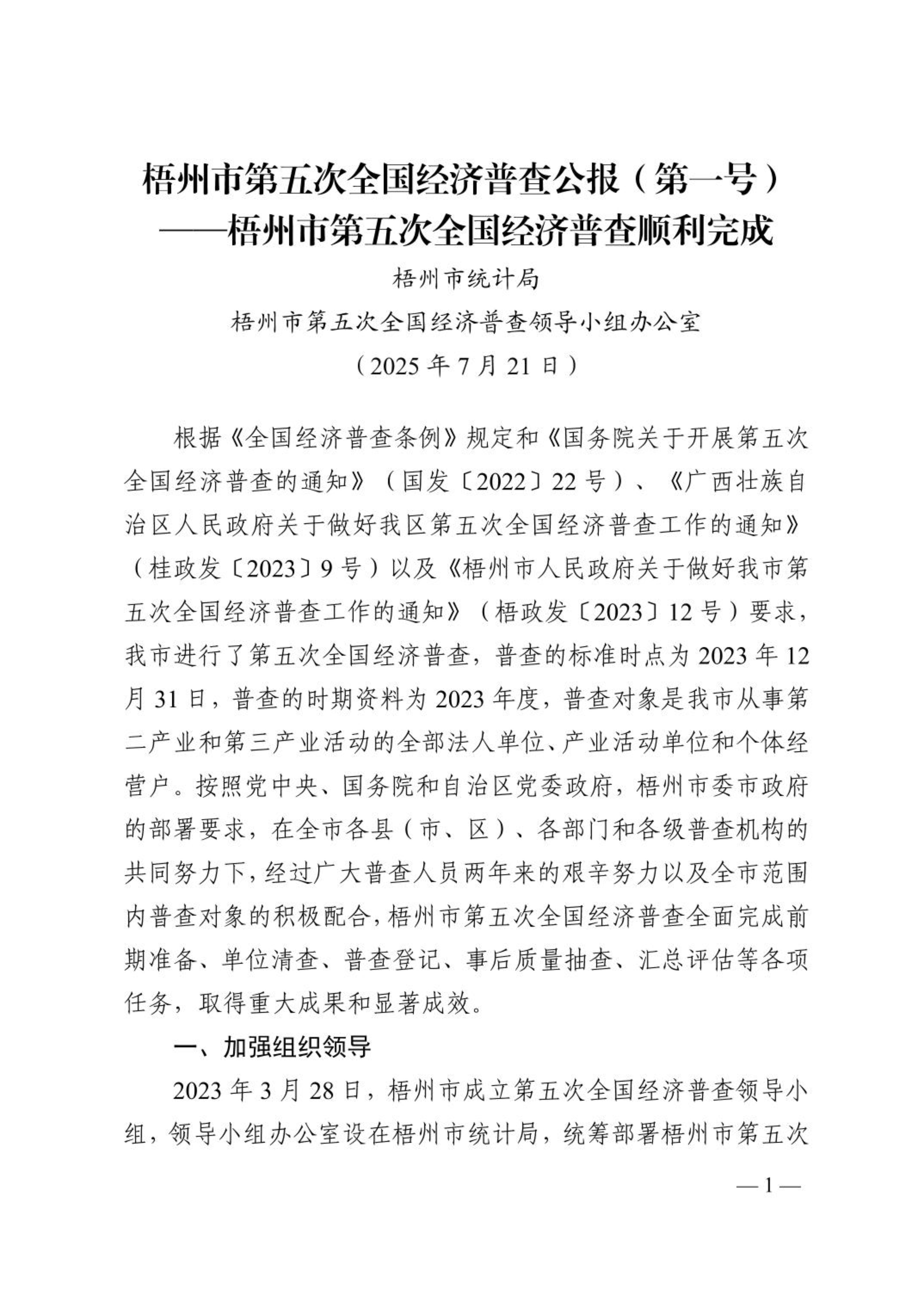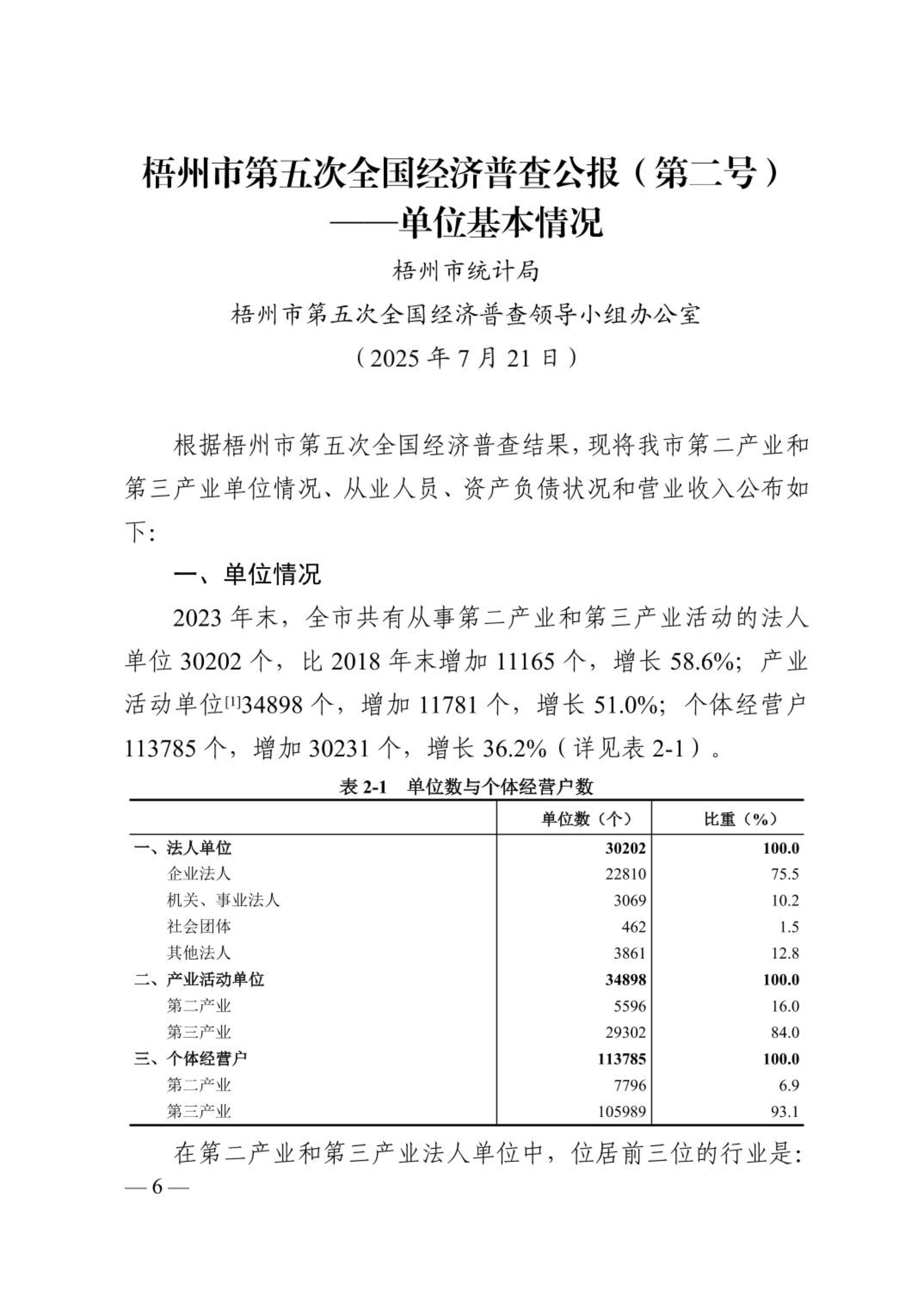 梧州市第五次全国经济普查公报(第一号至第七号)