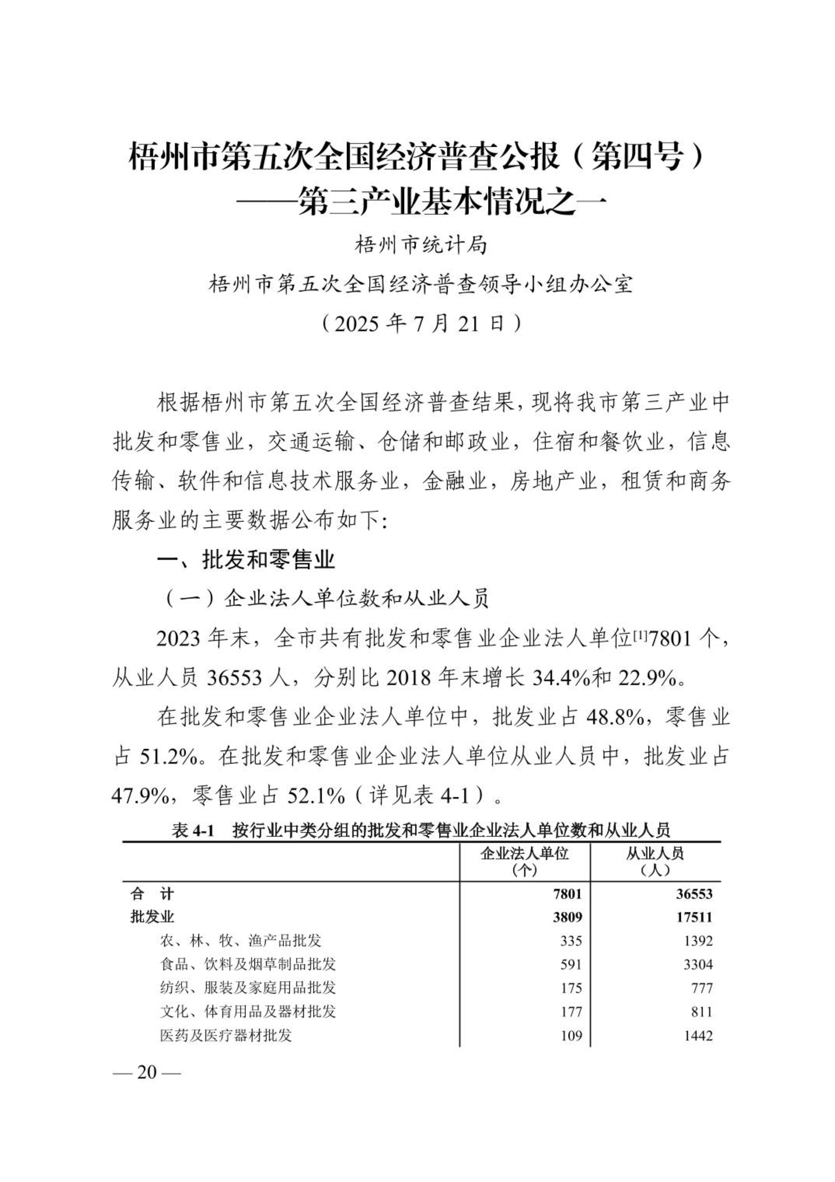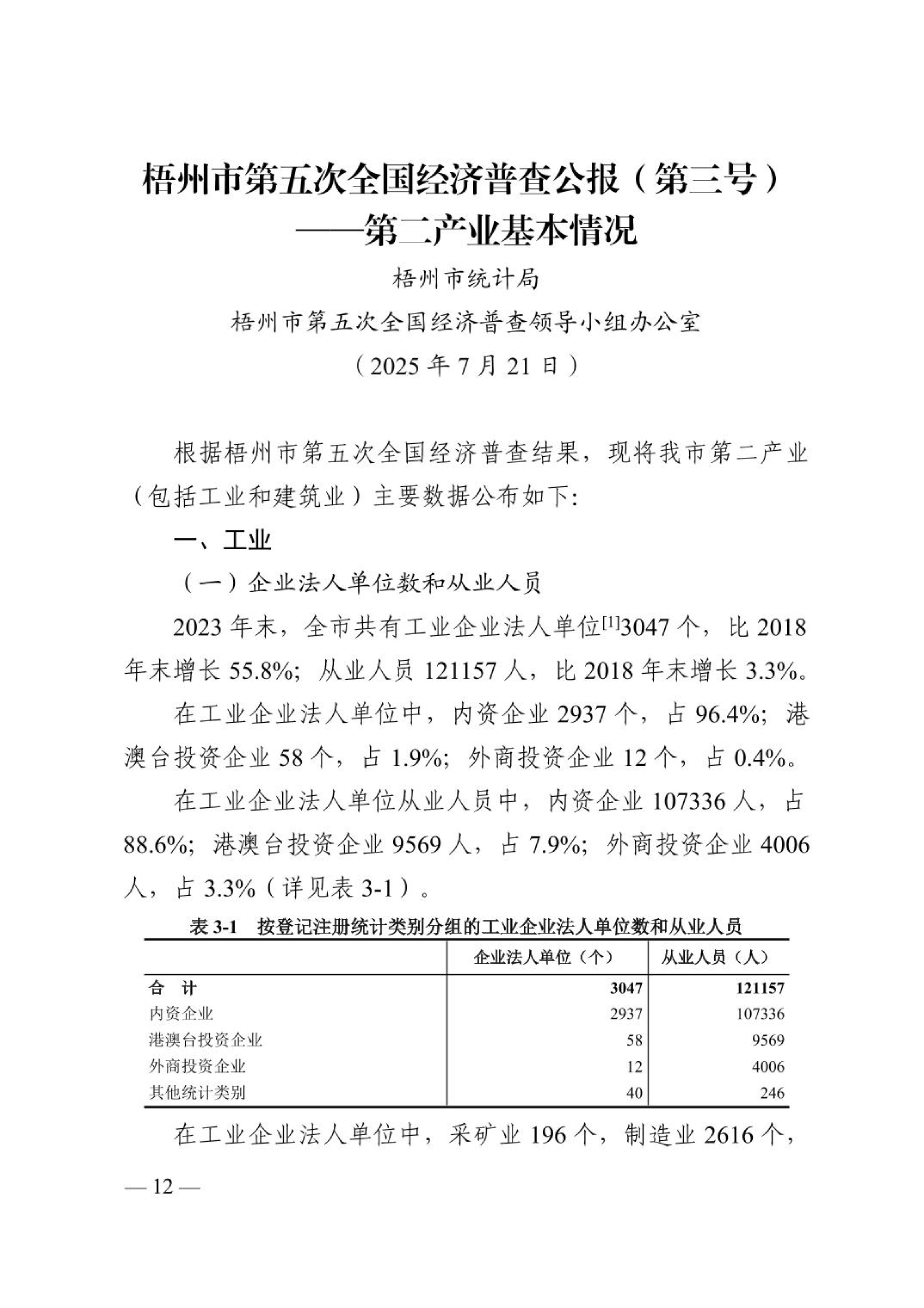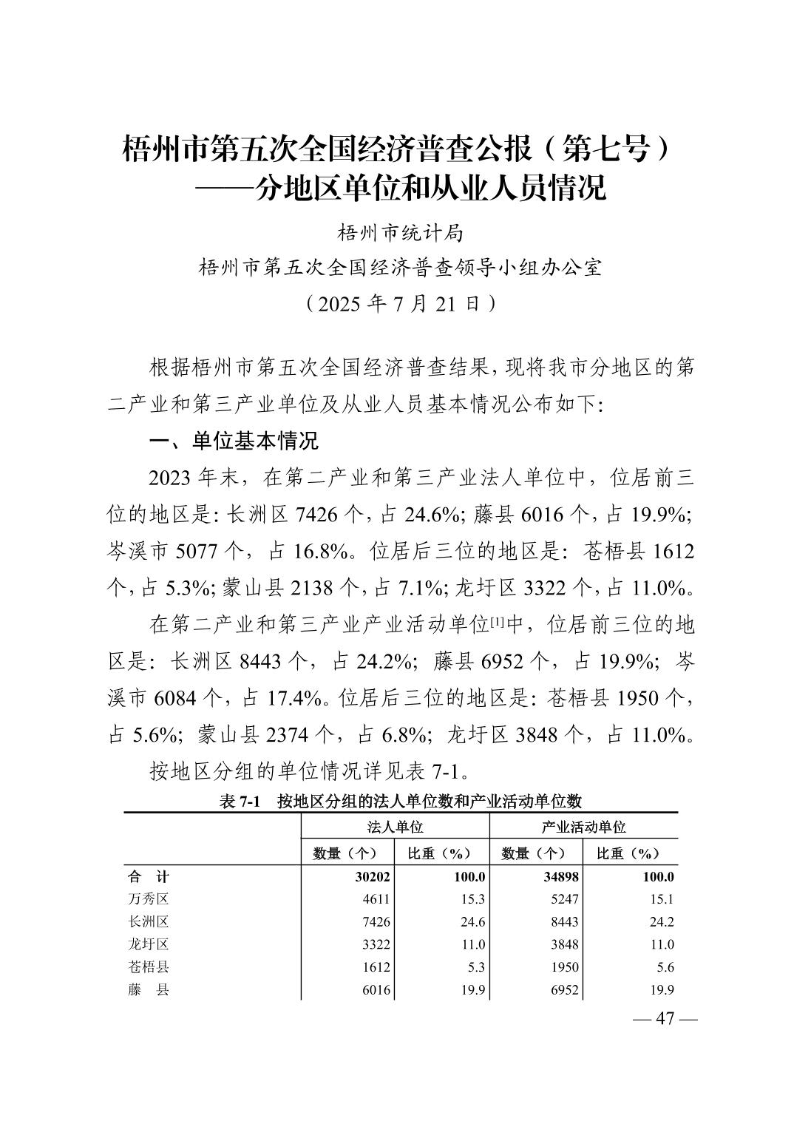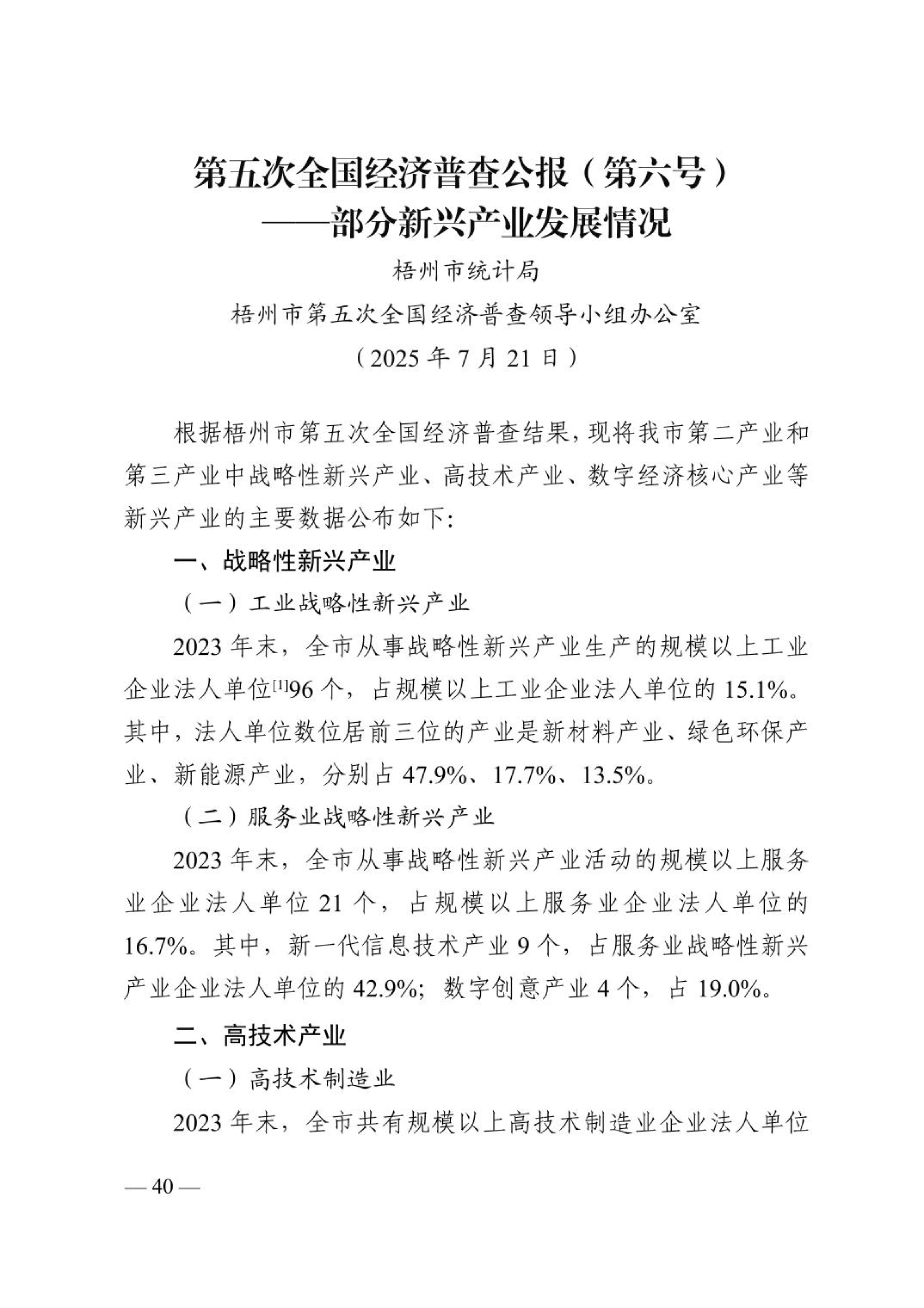 梧州市第五次全国经济普查公报(第一号至第七号)
