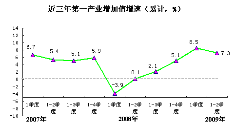 (一)农业生产形势较好。上半年全区农林牧渔业增加值445.04亿元,增长7.3%,其中一季度增长8.5%,二季度增长6.7%。种植业增加值151亿元,增长9.5%,上半年粮食产量14.5万吨,增长7.8%;水果产量137.9万吨,增长41.6%,其中荔枝产量26.7万吨,增长46.1%,香蕉产量33.2万吨,增长1.14倍。全区春种粮食面积1427.4千公顷,增长2.7%。林业增加值24.6亿元,增长0.3%,完成造林面积280万亩,占年度计划的80 %。牧业增加值186.3亿元,增长7.7%,肉类总产量182.9万吨,增长6.5%,其中猪肉产量114.7万吨,增长8.3%;生猪出栏1533.7万头,增长8.4%;生猪存栏2341.2万头,增长6.2%;家禽出栏36394.2万只,增长3.1%,羊出栏90.5万只,增长7.5%;牛奶产量3.9万吨,增长6.8%。渔业增加值66.6亿元,增长5.1%。水产品产量112.6万吨,增长4.9%,其中淡水和海水产品产量分别为48万吨和64.6万吨,分别增长7.6%和3.1%。