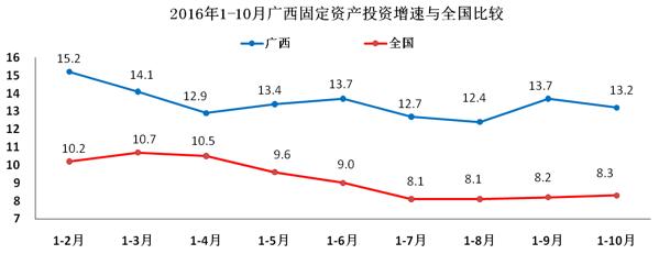 1-10月,全区固定资产投资13715.76亿元,同比增长13.2%,增速比全国高4.9个百分点,比1-9月回落0.5个百分点,排全国第8位,西部第4位。