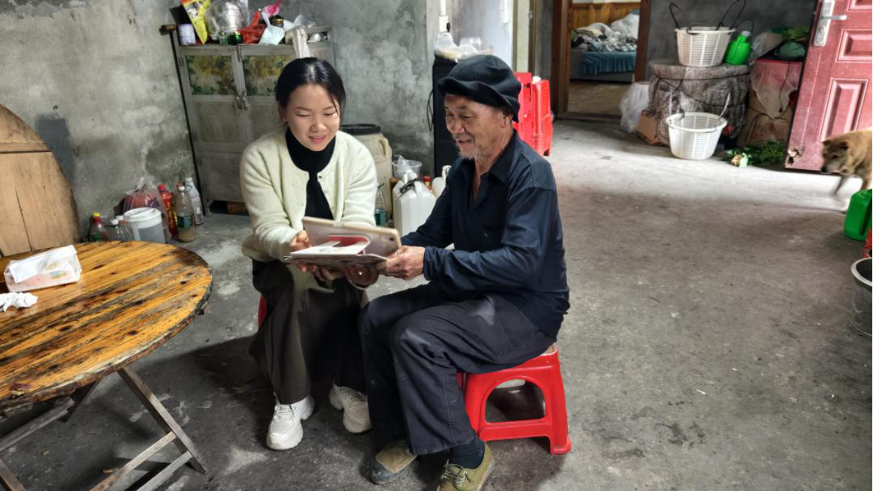 凭借流利的双语,贾秘坤把专业调查术语转化为亲切家常话,挨家挨户向老人们耐心解释调查意义;依托社保协理工作练就的电子设备操作技能,她高效完成数据录入,通过视频连线在外务工村民,实时核对儿童信息、就业状况等关键内容。 贾秘坤2022年本科毕业后,以乡村振兴协理员身份回到归述村,2024年服务期满后,又以就业社保协管员身份继续留村深耕。近三年驻村经历让她对全村每户情况烂熟于心:哪家老人行动不便需上门,哪家孩子家长在外务工,哪家白天无人需傍晚登门,她都一一记在心上、落在行动上。