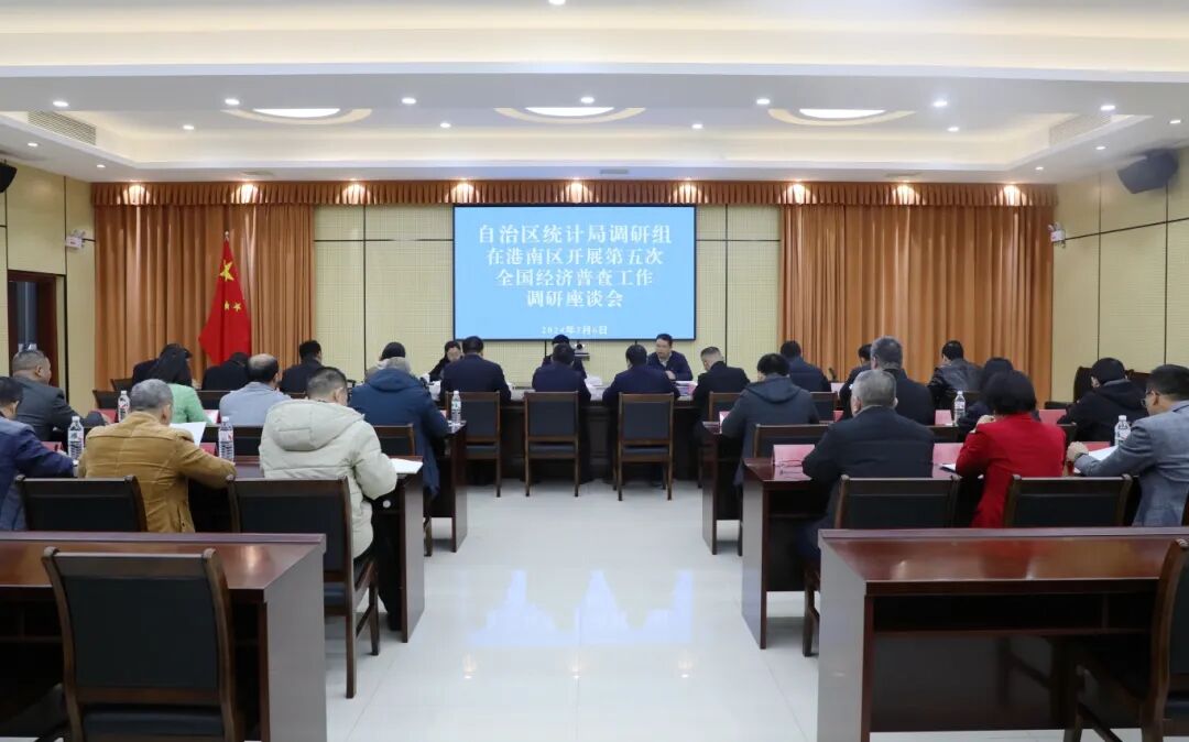 调研组跟随社区普查员一道,实地走访广西富贵满堂餐饮管理有限公司、港南区贵南法律服务所、大松石幼儿园并开展普查登记,与普查对象进行深入交流,详细询问了解普查对象的人员工资、经营情况等,并认真查看财务报表、利润表等相关资料,细致分析填报数据的准确性与合理性,发现问题及时反馈普查员并现场指导纠正。现场调研结束后,调研组一行在港南区召开调研座谈会,听取了港南区关于普查工作进展情况汇报,并与参会人员进行了座谈交流。
