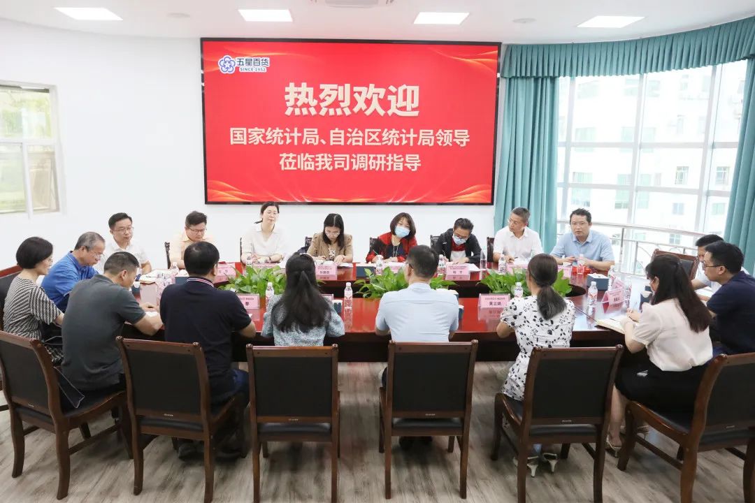在五星百货股份有限公司,调研组实地开展了投入产出试点工作调研座谈,听取企业对投入产出电子统计台账操作的意见建议,查看了企业6月、7月投入产出表,询问了数据来源、如何关联财务系统、数据截取逻辑等问题。调研组对企业自研的财务系统、通过自培技术人才钩联数据以及数据质量表示赞许。