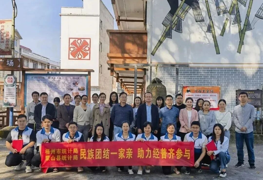 联合蒙山县统计局开展“民族团结一家亲 助力经普齐参与”共建活动,深入夏宜瑶族乡慰问普查员,组织开展现场宣传,推动经济普查宣传向基层延伸。