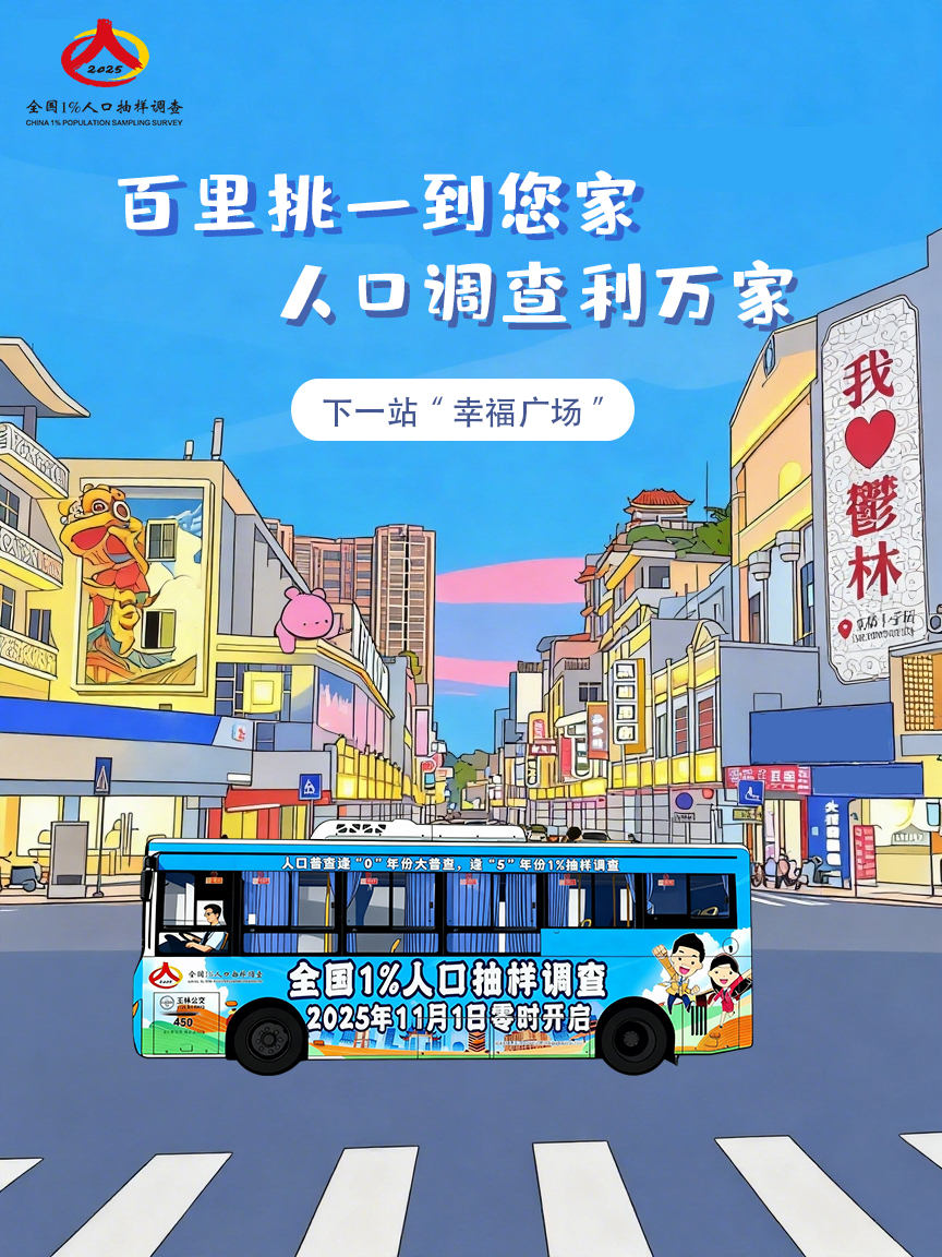 玉林市:全国1%人口抽样调查专属公交车正式上线啦!