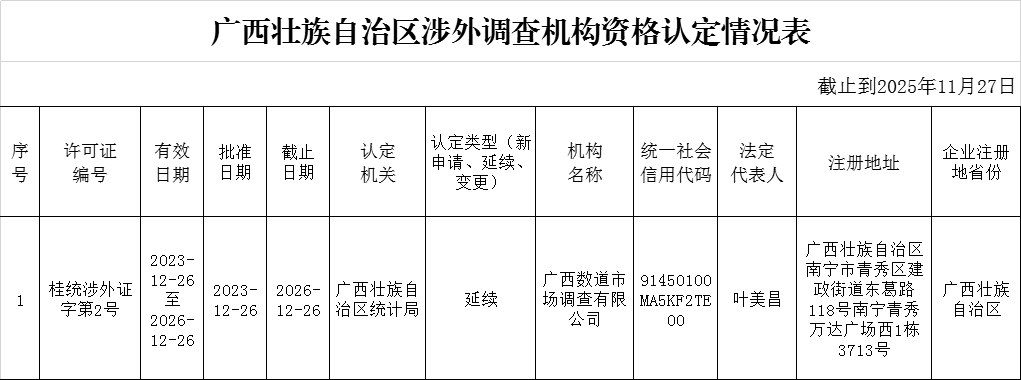 广西壮族自治区涉外调查机构资格认定情况表(2025)